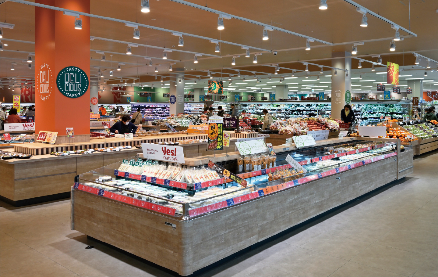 大きく広がる店内には、新鮮な食材から飲料品やワインなどの酒類、フルーツまで、多種多様な品々がわかりやすく各コーナーに分けられて並んでいます。目当ての品物が簡単に見つけられます。