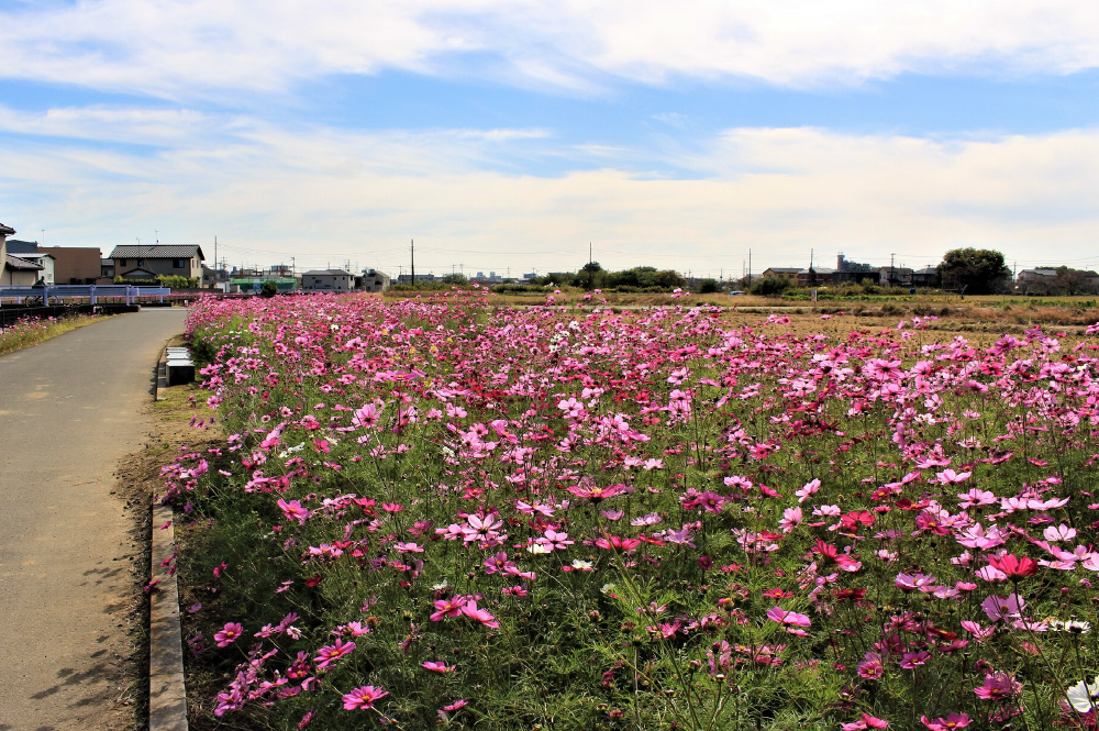 鷲宮地区の中央を流れる葛西用水路沿いの両岸約10キロに整備された道です。ランナーズインフォメーション研究所から、ランニングコース「秋桜の道」として認定されています。