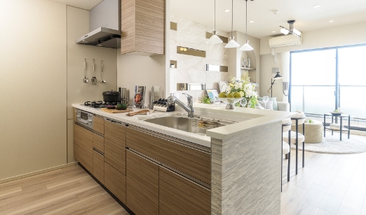 ディスポーザや食洗機など家事楽アイテムを採用した