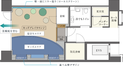 ※掲載のキッズプレイラウンジ平面図イラストは計画段階の図面を基に描き起こしたイラストで実際とは多少異なります。また計画は変更となる場合があります。