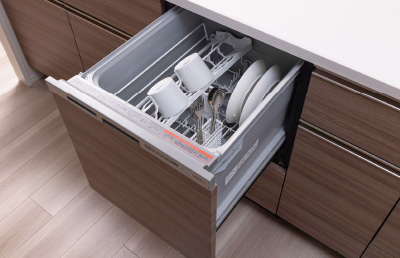 手洗いに比べ節水でき、高温洗浄で油汚れもスッキリ。家事の負担を軽減します。