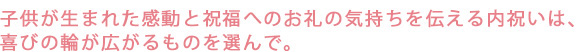 そんな声が次々に届いて、パパとママが「次の内祝いはなんにしようかなぁ」と楽しそうに話をしています。