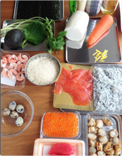 - 白米を酢飯用に少し固めに炊き、好みの具材は一口大にカットしておく。季節野菜を食べられる状態に加熱・カットしておく。