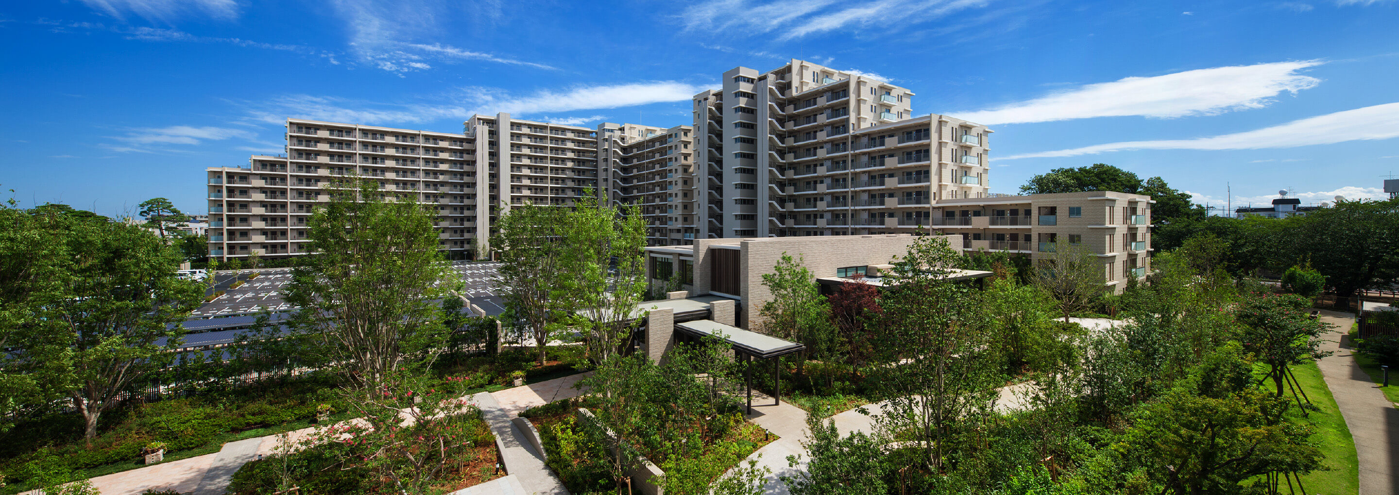 住む方だけでなく、地域の方にも親しんでもらえるランドスケープをデザイン。歩いて楽しい遊歩道、ベンチを配した広場など、心地よさと機能性を併せ持つ空間が地域をつなぎ、より快適な暮らしを演出します。