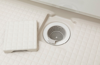 水はけの良い素材とカタチで水たまりを防ぎます。また、従来に比べて床の溝が浅くなり、スポンジが溝の奥まで届きやすくお掃除がしやすくなりました。
